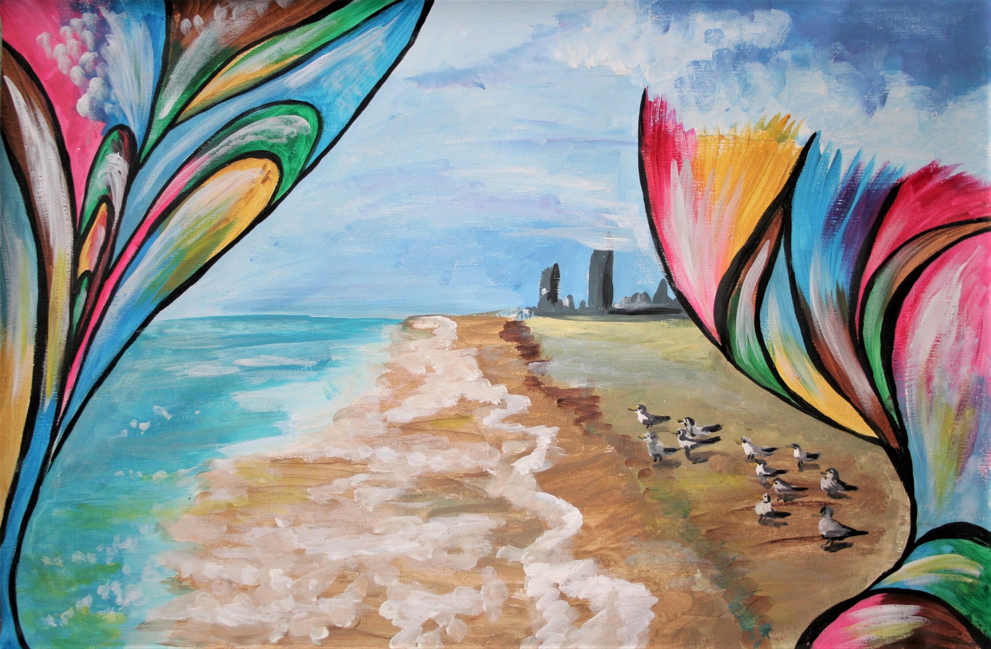 Army of seagulls, acrylic on canvas; 2021; 50 x 80 centimeters; 19.685 x 31,4961 inches