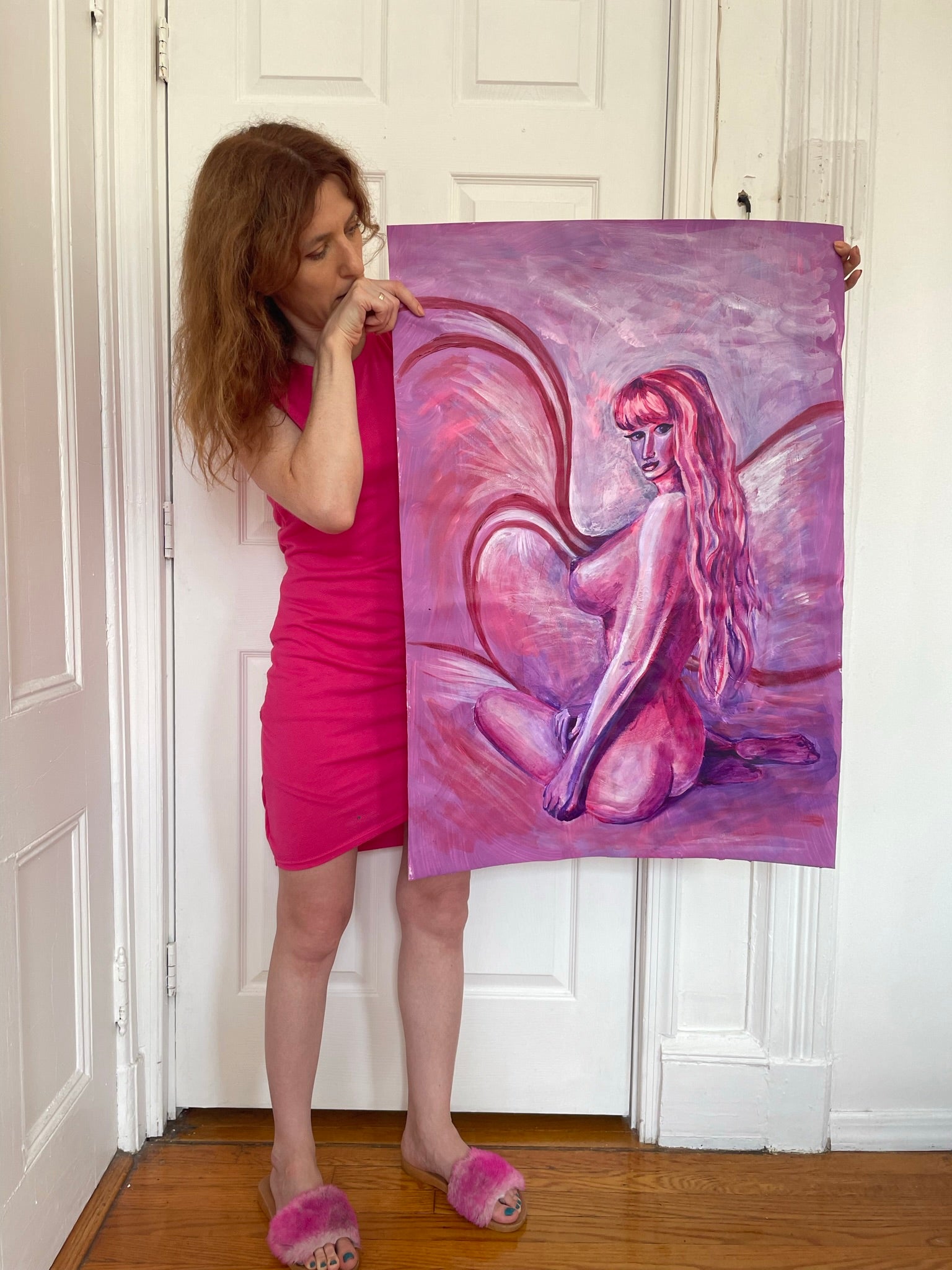 Step into a world of playful elegance with "Barbie Dreams," a modern painting drenched in shades of pretty pink. This captivating artwork features a nude figure in the iconic style of Barbie, celebrating both the beauty of the human form and the timeless allure of a beloved cultural icon.