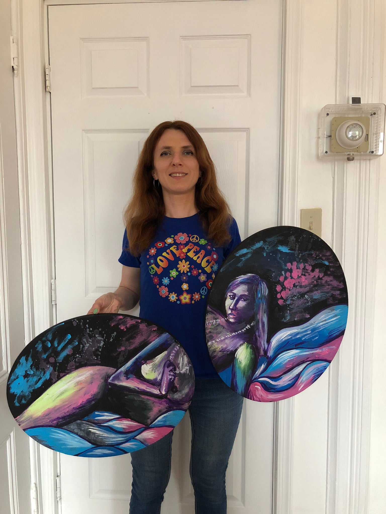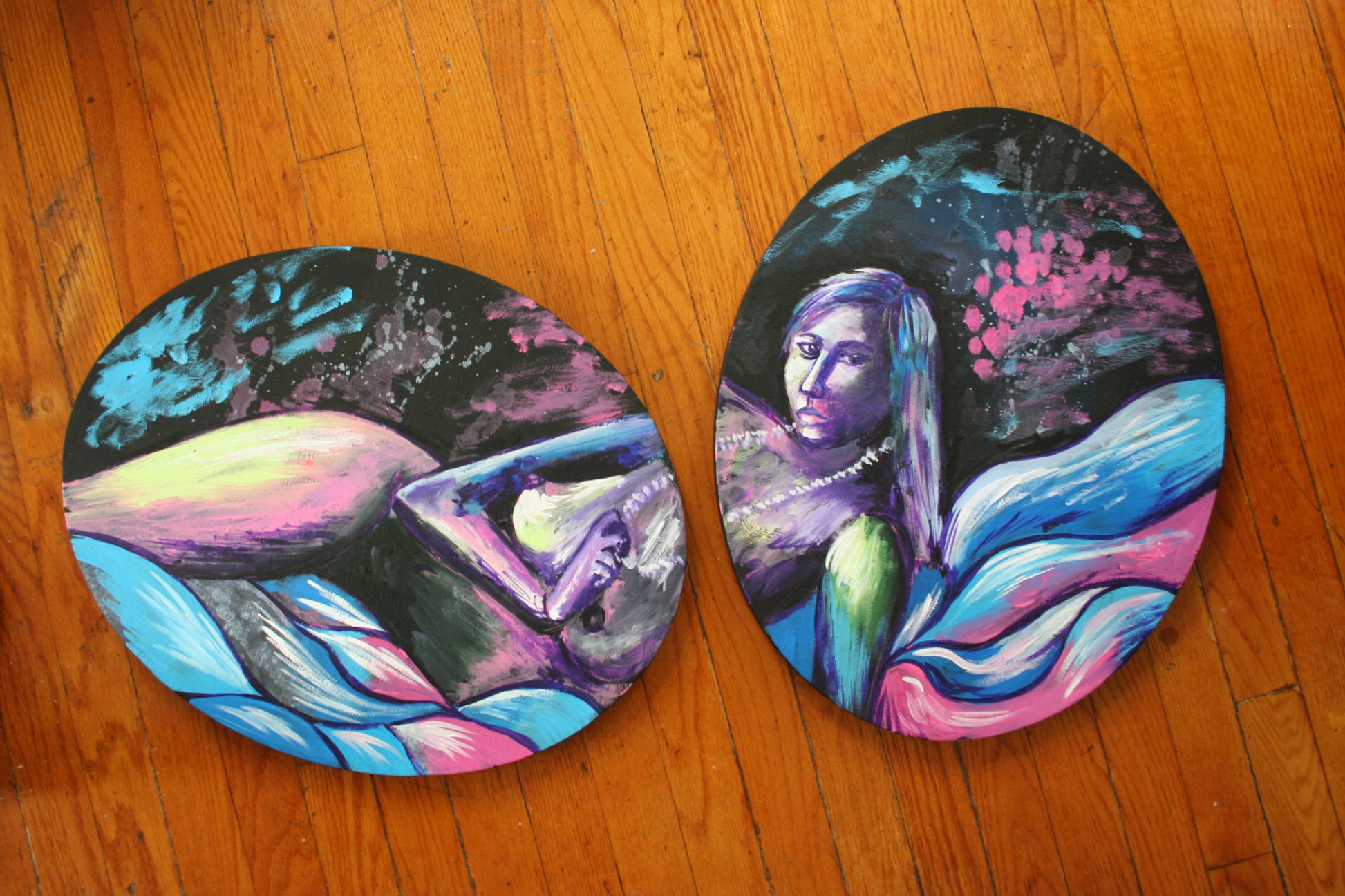 Beads; acrylic on canvas; 2022; two oval canvases 41 x 51 centimeters (Overall size 60 x 90 centimeters), 16 x 20 inches (Overall size 23.6 x 35.4 inches)