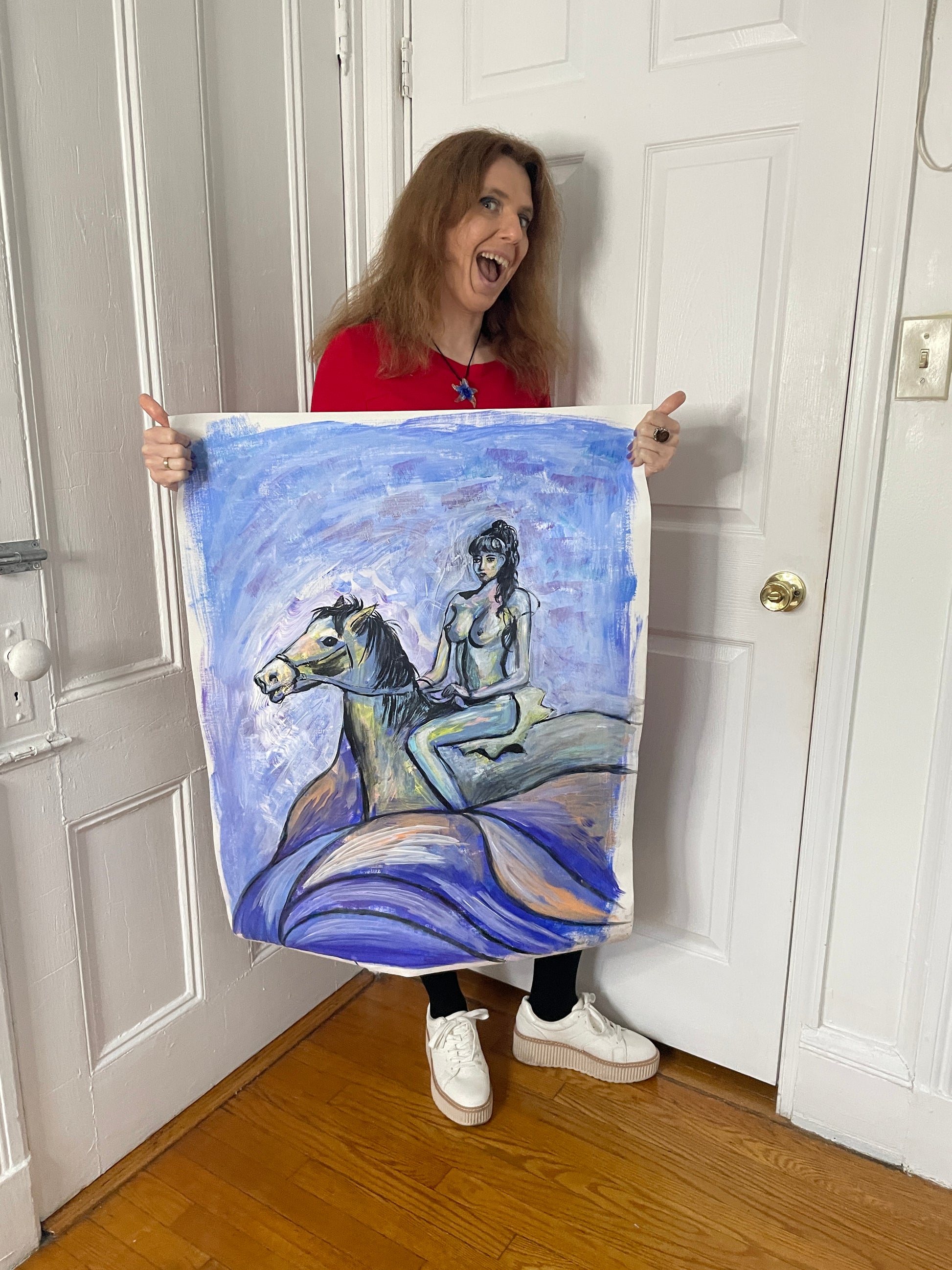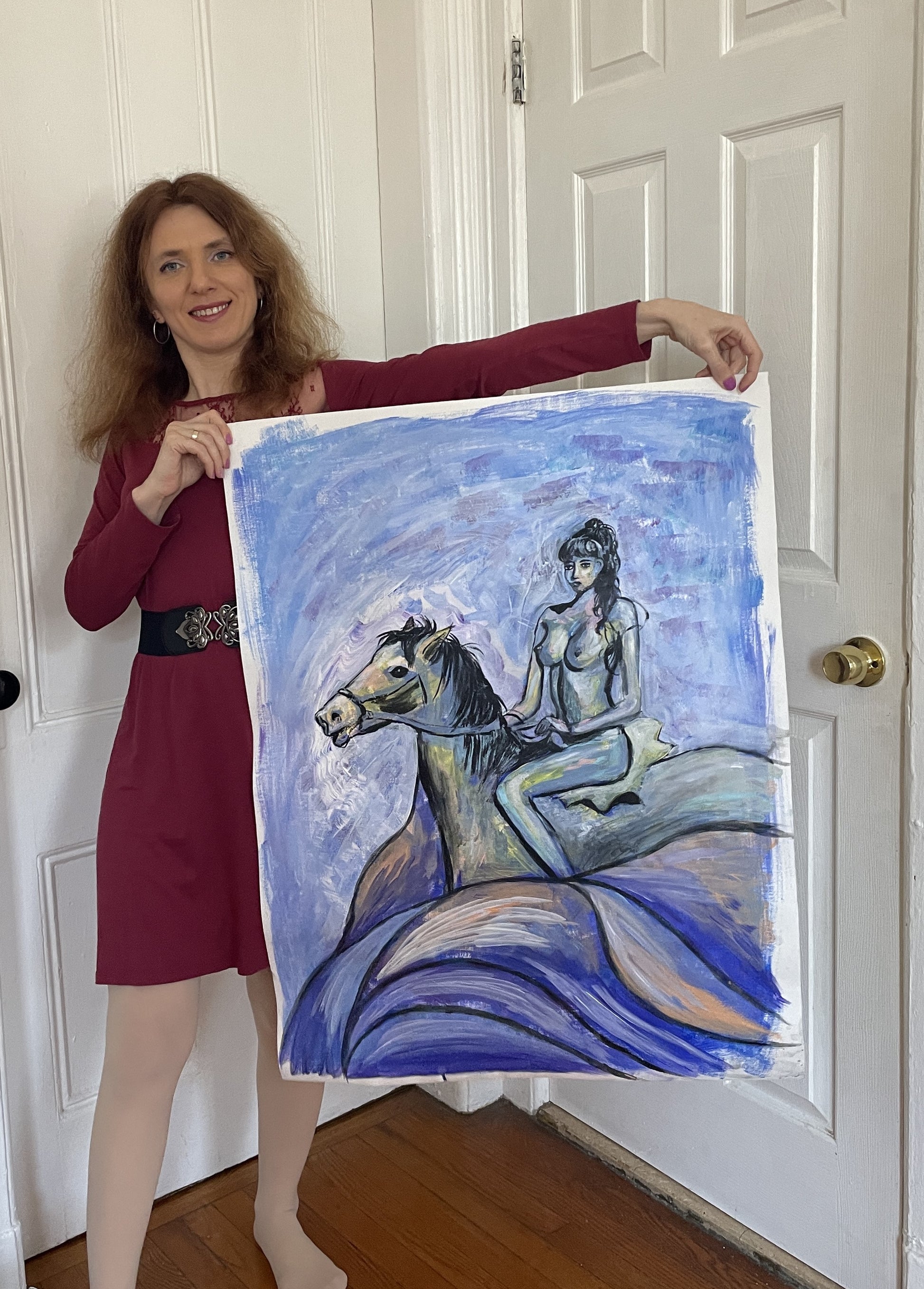 Curly horsewoman; acrylic canvas; 2024; 36 х 28 inches; 90 х 70 cm