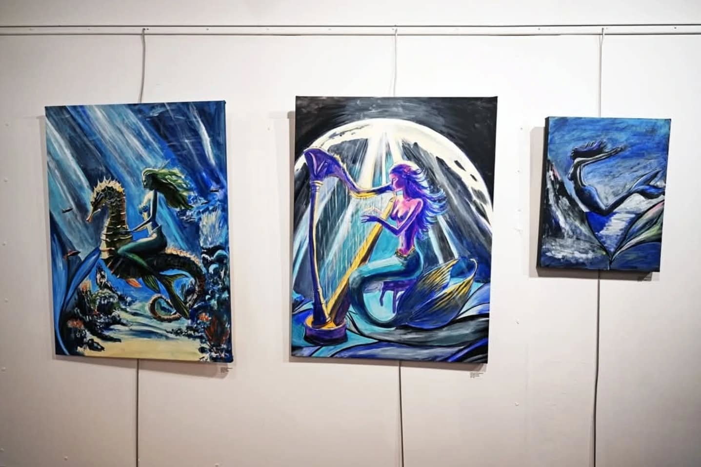 "Depth Jump" is a striking exploration of the human experience, depicted through the graceful dive of a mermaid from the heights of a cliff into the vast embrace of the ocean. This painting captures the essence of transitioning between different environments and the varied feelings that come with it. It speaks to the courage and adaptability required to navigate the complexities of life, especially when moving from one realm of experience to another.