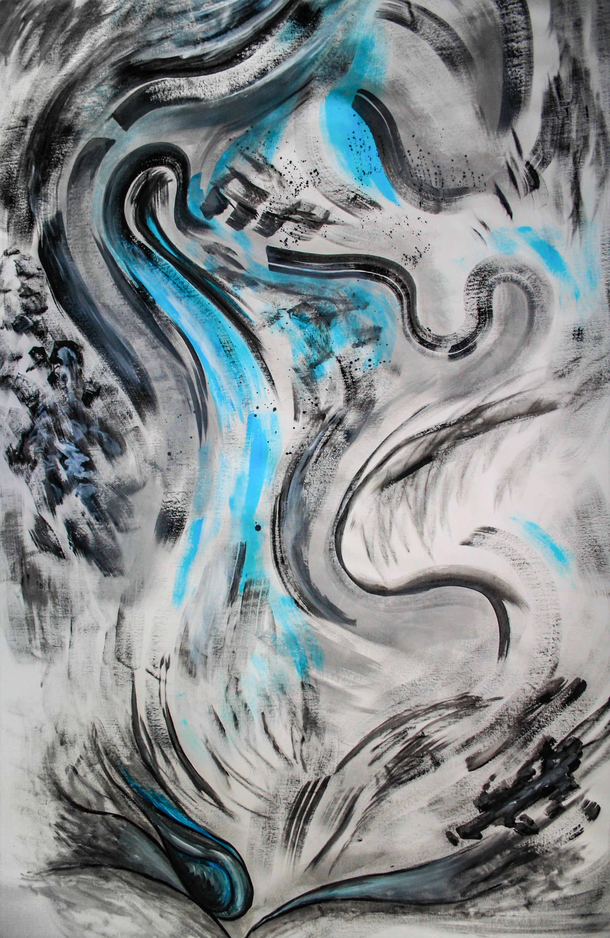 Immerse yourself in the harmonious beauty of "Evolution," an extraordinary extra-large abstract artwork that gracefully merges the serenity of Asian painting with contemporary abstraction. This mesmerizing piece boasts a light abstraction featuring a delicate interplay of white, black, and blue tones, evoking a sense of tranquility and fluidity.