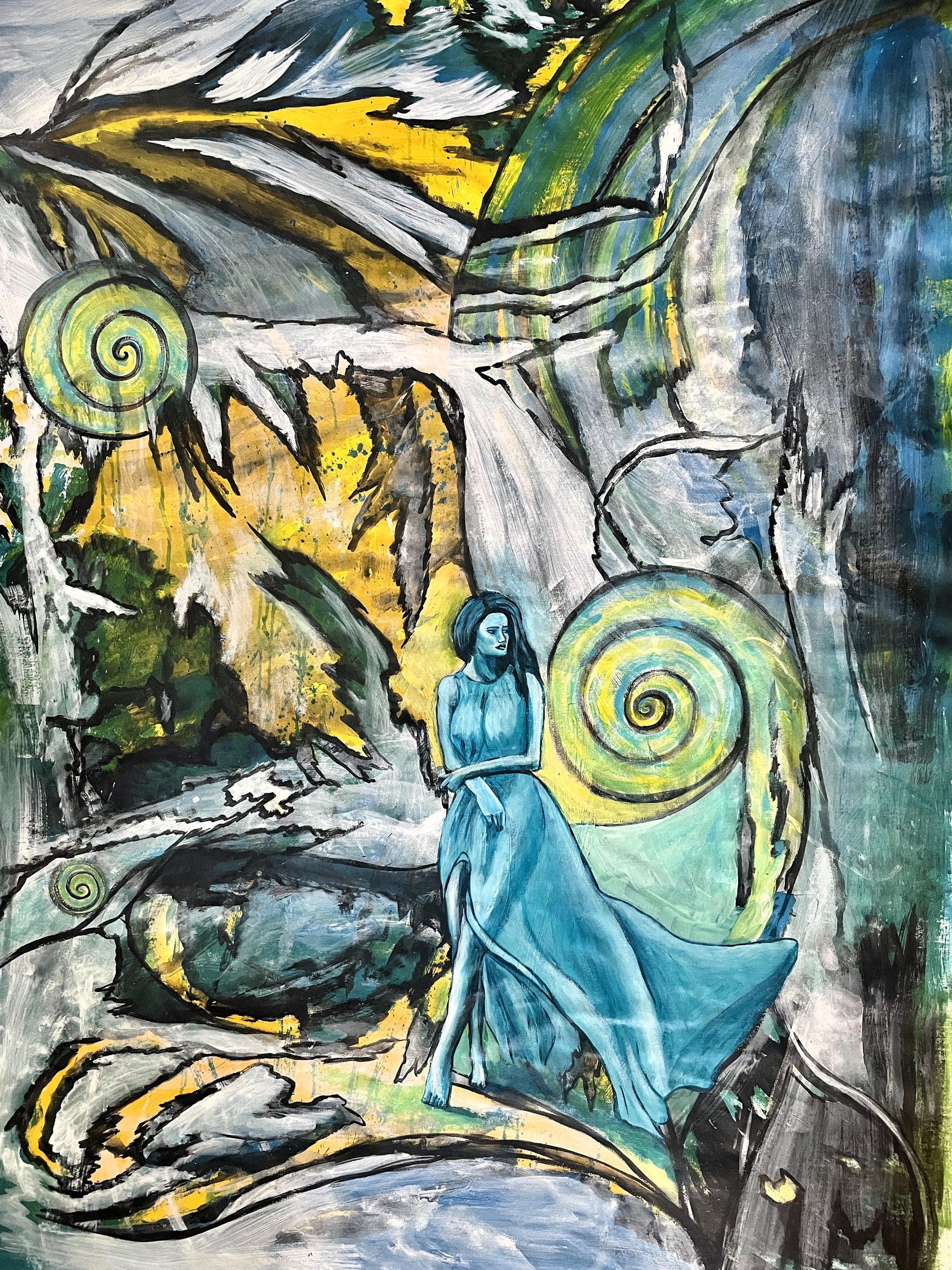 Moving to a new reality; acrylic, canvas; 2024; 95 х 72 inches; 240 х 183 centimeters